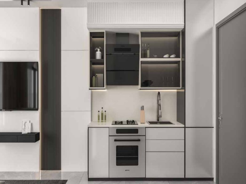 Smart Studio Layout: 380 sq. ft. featuring Vastu-compliant design, floor-to-ceiling glass, and integrated storage solutions.
