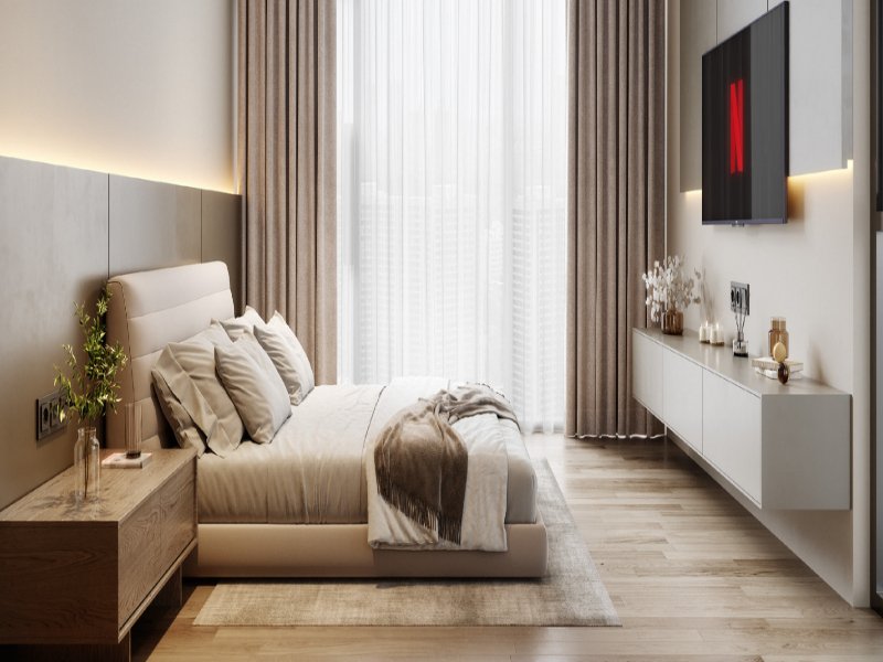 Modern Aesthetic: Sleek, minimalist interiors with high-quality flooring and designer kitchen and bathroom fittings.