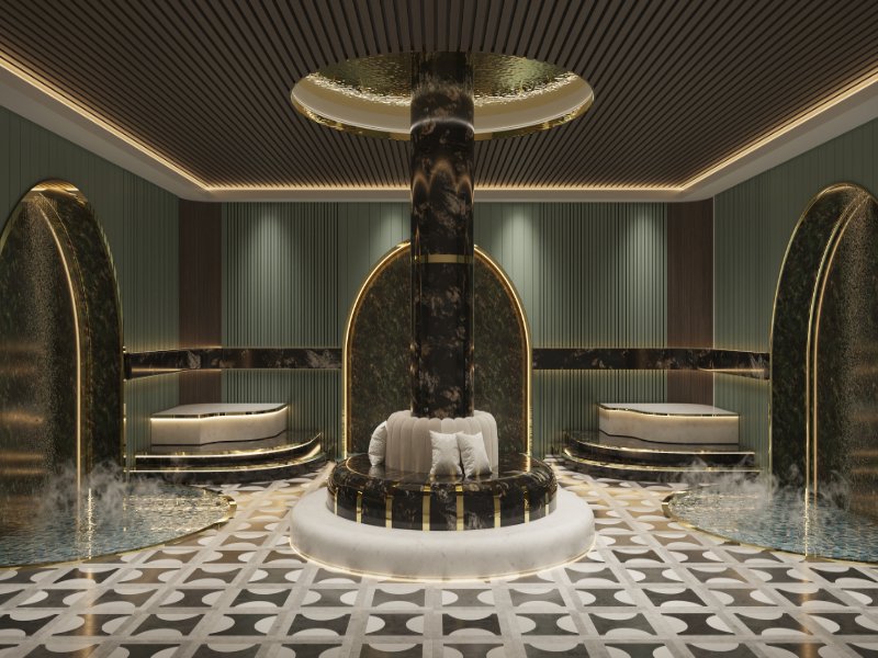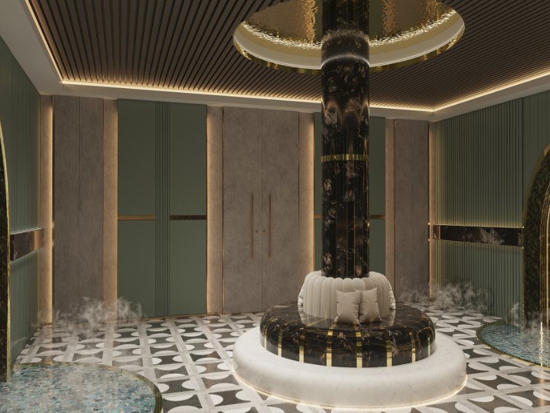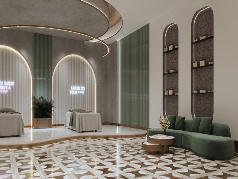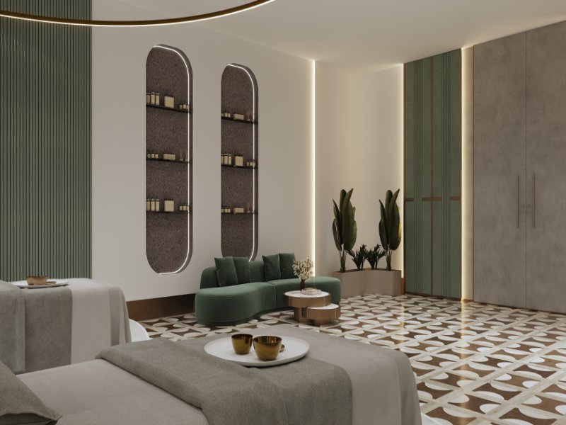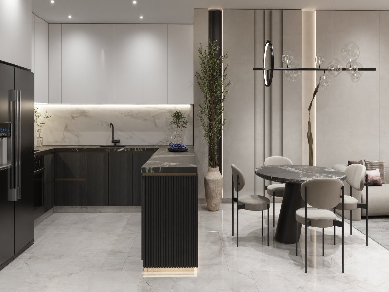 Roman-Inspired Elegance: Sophisticated interiors with high-quality finishes and floor-to-ceiling glass walls.