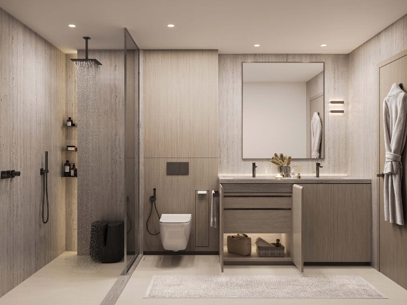 Minimalist Architecture: Designed with a chic, clean palette that appeals to the modern international tenant.