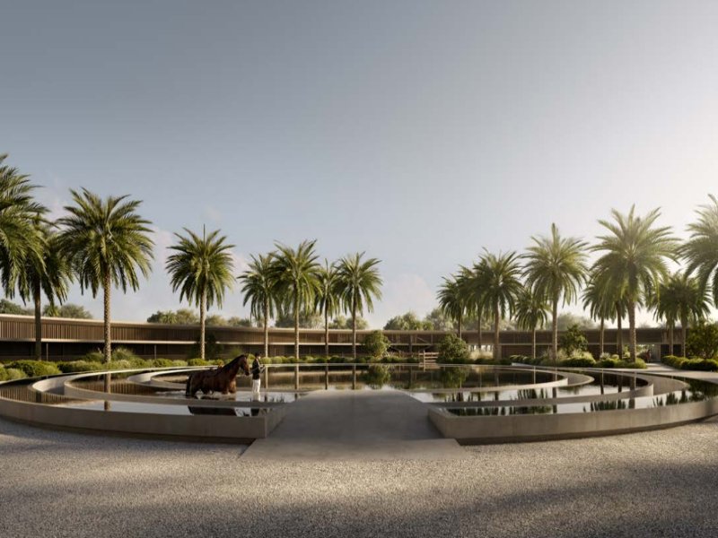 Monumental Architecture: A blend of sleek minimalism and equestrian elegance, providing massive internal volumes and natural light.
