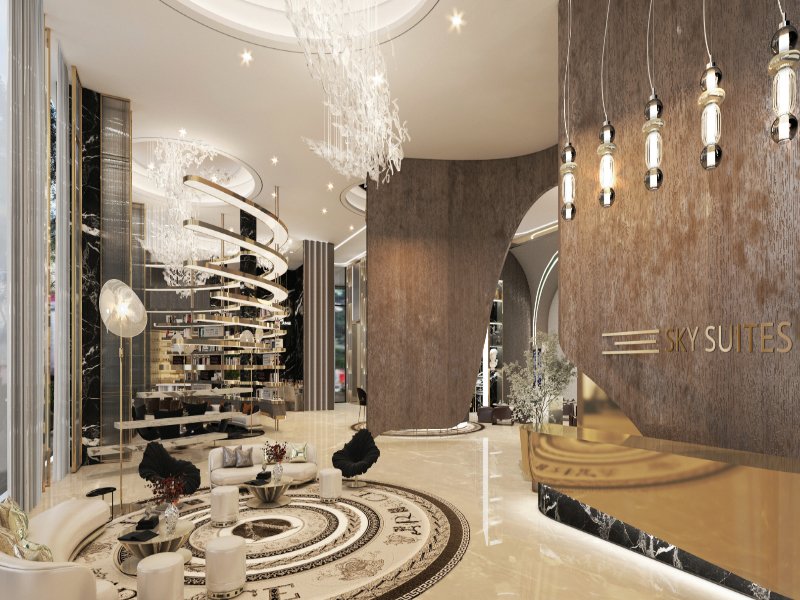 Experience a new dimension of grandeur at Sky Suites, a premier residential landmark in Jumeirah Village Circle. This 2-bedroom duplex (4,405.56 sq. ft.) redefines apartment living, offering the sprawling footprint and privacy of a standalone villa elevated in the sky. The residence features soaring double-height ceilings in the living area, floor-to-ceiling glass walls, and an architectural staircase connecting two levels of pure luxury. Residents enjoy access to elite amenities including a designer swimming pool, a state-of-the-art fitness center, and lush social spaces, all within one of Dubai’s most connected and vibrant communities.
